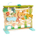Une cascade à palets en bois, destinée aux enfants à partir de 18 mois. L’enfant choisit de déplacer les palets dans les entrées (3 emplacements) en haut de la cascade puis les laisse glisser vers le bas. En milieu de parcours 3 animaux retiennent les palets. Pour les libérer, l'enfant tourne le lion, tire sur la girafe ou décale l'hippopotame afin de finir cette course folle.