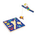 Puzz & Fish est un jeu 2 en 1 : un puzzle en bois et un jeu de pêche. La canne à pêche tenue par un chat est aimantée. L'enfant attrape les poissons grâce au chat pêcheur, puis replace les éléments à leur place sur le socle.
