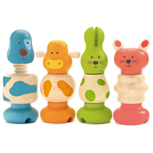 4 animaux en bois à visser et dévisser pour développer la dextérité des tout-petits.