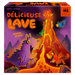 Les jetons sont cachés sous le plateau de jeu et ne sont que partiellement visibles. À chaque tour, une personne lance un dé, tire autant de nouveaux jetons "lave" du sac, puis les pousse sur le terrain de jeu. Mais avant de le faire, chaque joueur place son dragon en carton tridimensionnel, doté d'une gueule grande ouverte, devant l'une des ouvertures du plateau de jeu. Idéalement, les éclats de lave les plus précieux tomberont dans votre bouche, et vous éviterez les gris puisque ces éclats de lave froide vous coûteront un précieux jeton de points à la fin de la partie.