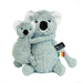 Peluche koala maman et son bébé Rien ne sert de courir, il faut y aller TRANKiLOU! Ces deux petits potes ne se prennent pas la tête, et à quoi bon! Rien de mieux qu'un bon câlinou pour être heureux! Alors keep cool et n'hésite pas sur le hug! La peluche koala couleur verte menthe est vendue avec son bébé. La peluche de 29 cm est en velours côtelé et soft. Age : dès la naissance
