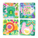 Contenu : 4 planches illustrées carrées en plastique souple avec une couche blanche qui disparaît, un crayon à réservoir d'eau et 1 support en carton épais.